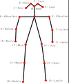 使用无标记动捕中的第一个重要的步骤就是人体关键点检测,通过算法分析计算出图像中人体各关键点的位置。目前coco人体关键点数据集将人体关键点表示为17个关节,分别是鼻子、左右眼,左右耳,左右肩,左右肘,左右腕,左右臀,左右膝,左右脚踝。如下图所示
